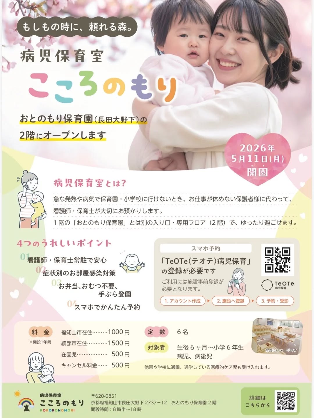5月から福知山市に新規OPENします。病児保育室です。親子のこころのよりどころになれるような場所を目指しています😊どうぞよろしくお願い申し上げます🙇#病児保育室#病児保育こころのもり#おとのもり保育園#あいのもり保育園保育園看護師 2026年04月09日 5月から福知山市に新規OPENします。病児保育室です。親子のこころのよりどころになれるような場所を目指しています😊どうぞよろしくお願い申し上げます🙇#病児保育室#病児保育こころのもり#おとのもり保育園#あいのもり保育園保育園看護師